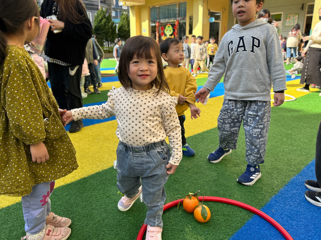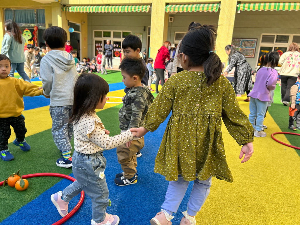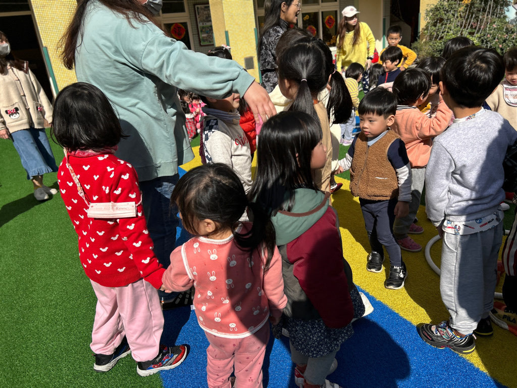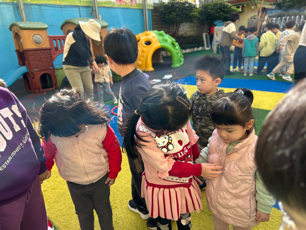 大班的哥哥姊姊帶著幼幼班一起闖關,大家超棒的