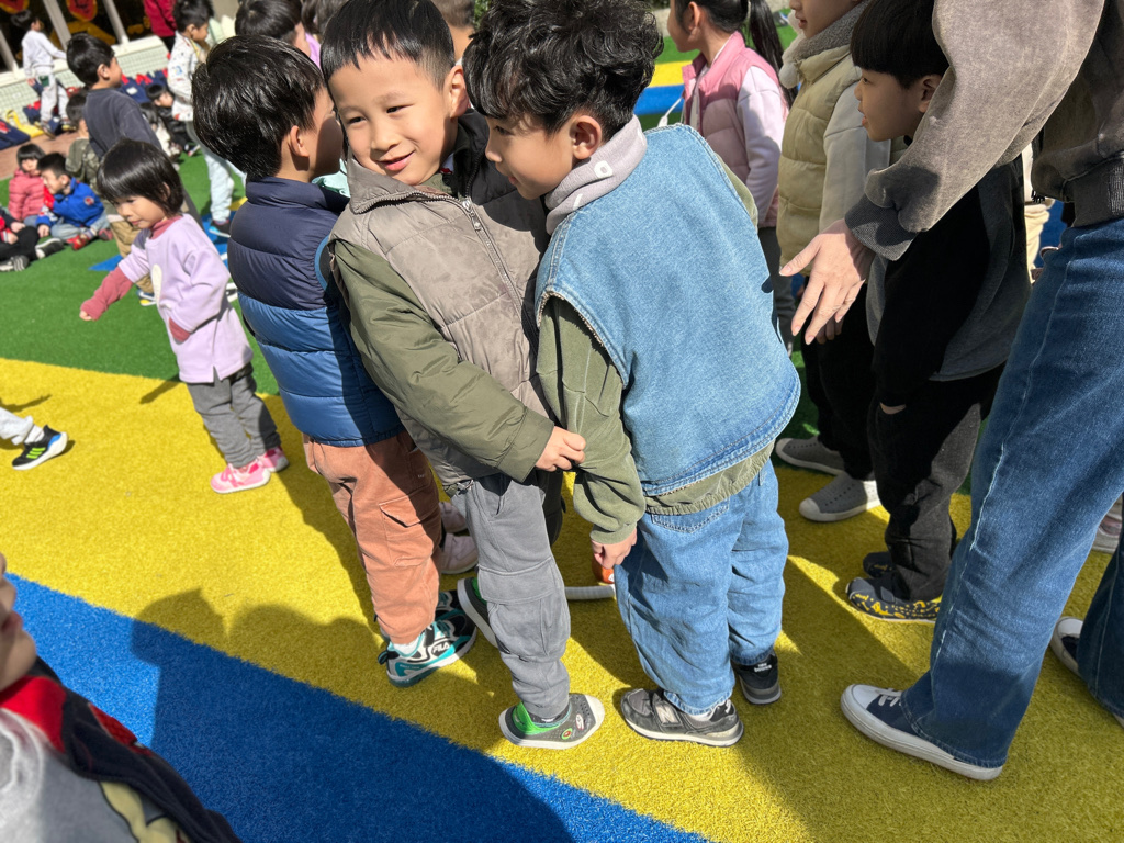 大班的哥哥姊姊帶著幼幼班一起闖關,大家超棒的
